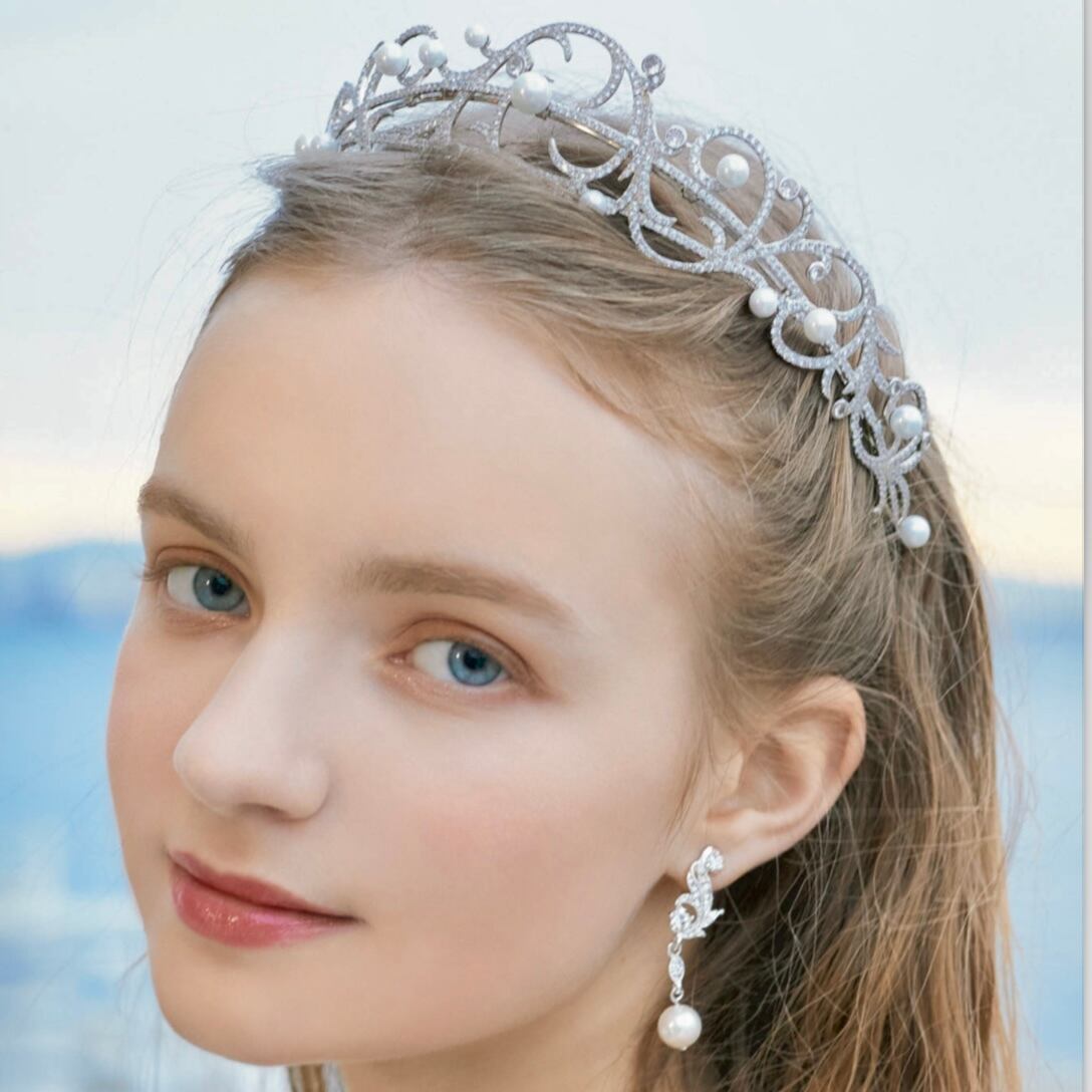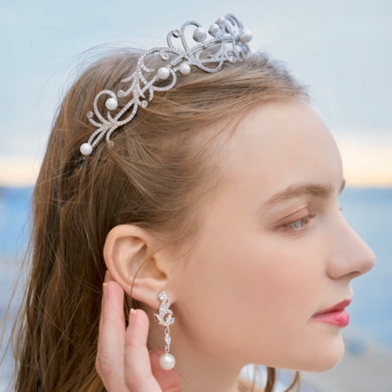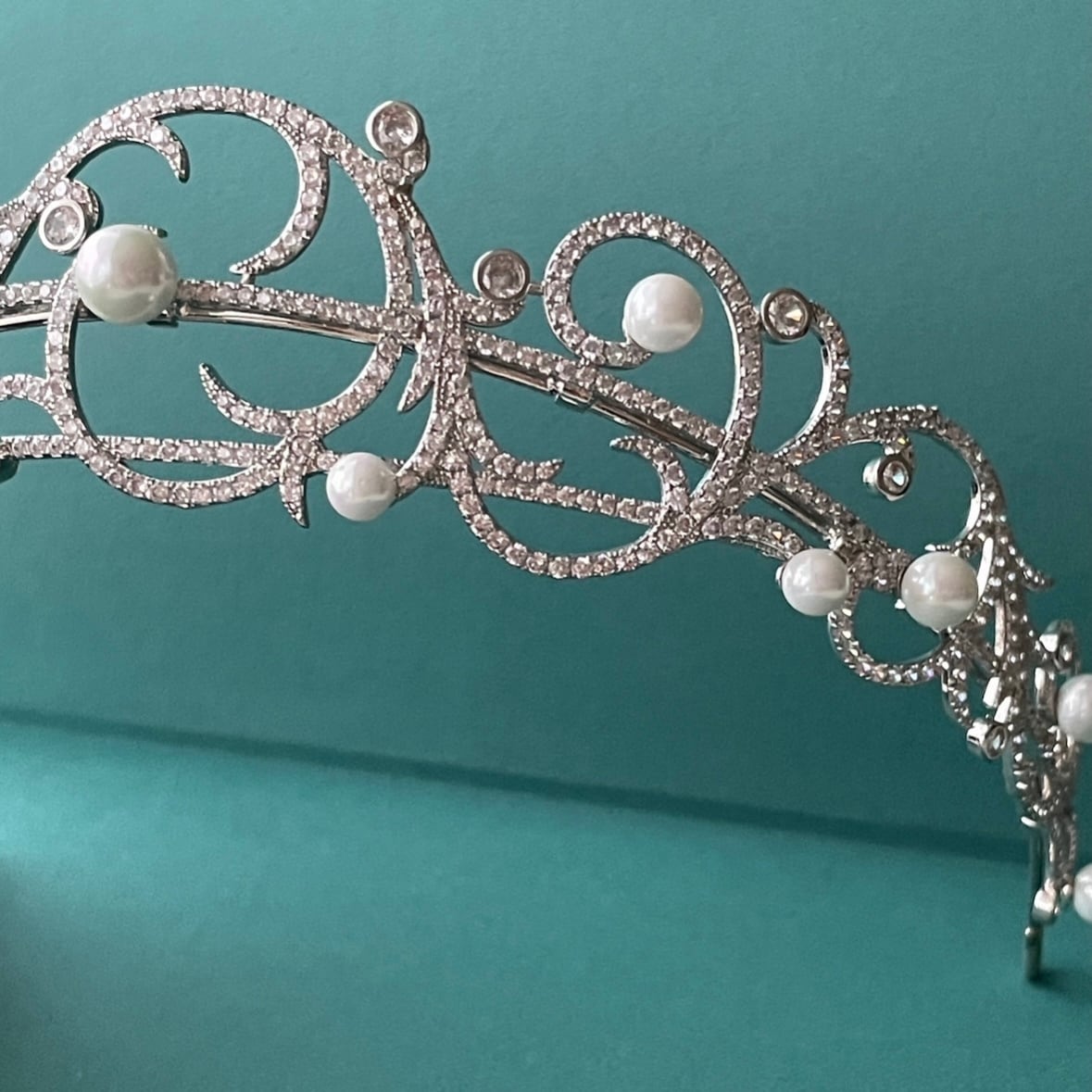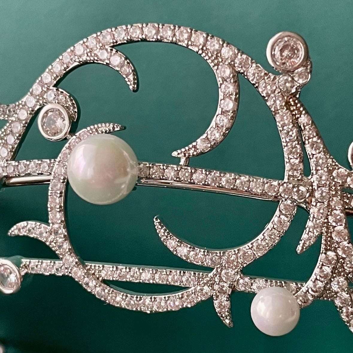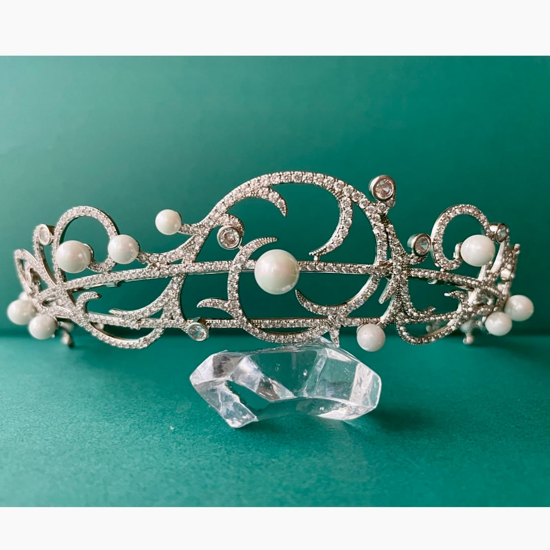 『波 』『風』を モチーフにしたティアラ 。 人魚の “幸せの涙 “と言われている 大粒の「パール」を散りばめて。 1880年代頃 フランス製
